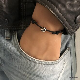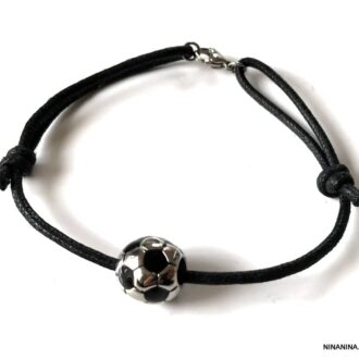 Bracelet ballon de foot noir et blanc cordon réglable