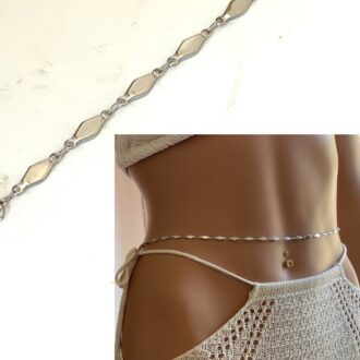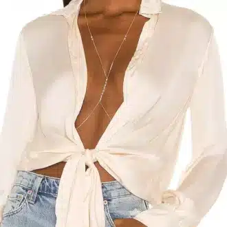 - Argent : Les chaînes de corps en argent sont une alternative abordable et tout aussi élégante. Les femmes apprécient l’argent pour son éclat et sa teinte discrète qui s’harmonise avec une grande variété de tenues. Les chaînes en argent peuvent être simples ou agrémentées de pendentifs et de pierres, pour un bijou personnalisé et unique.