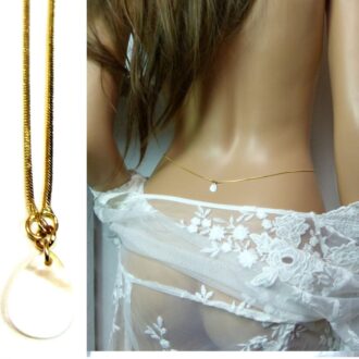 Habillez votre dos dénudé avec une chaine de dos, appelée aussi collier de dos. Un petit pendentif délicat et raffiné retombe idéalement dans le bas du dos, au bout d’une chaîne longue à la fois discrète et robuste, le mettant parfaitement en valeur. Très fin et délicat, le collier de dos est le bijou idéal pour habiller une robe dos nu, il peut se porter sur l’arrière façon bijou de dos, ou sur l’avant façon sautoir !
