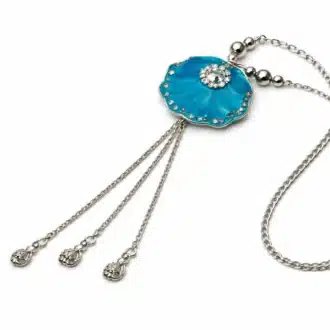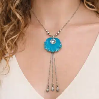 Collier Fantaisie pour femme artisanal – pendentif métal bleu émaillé