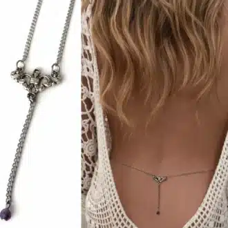 Chaîne de taille acier inoxydable argenté artisanale avec pierre Améthyste véritable