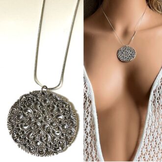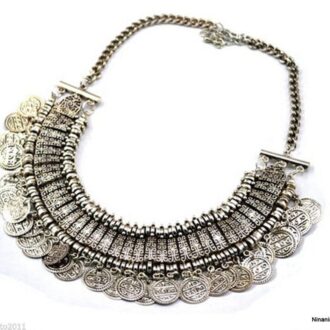 Collier Ethnique Plastron Breloques Pièces Argenté