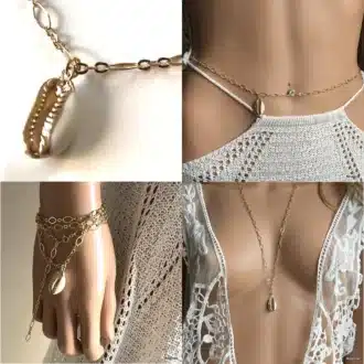 Chaine avec coquillage cauri blanc et doré – Collier de ventre plaqué or artisanal