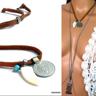 Trouvez le Collier Cordon Femme que vous recherchez parmi cette vaste séléction de Colliers Cordons Fantaisie pour Femmes NINANINA avec pendentifs ou perles métal, turquoise, bois, montés sur cordon cuir ou coton, lacet daim ou lien en soie, vous trouverez forcément votre bonheur !