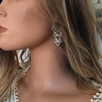 Optez pour un style moderne avec ces boucles d’oreilles aux formes géométriques épurées.