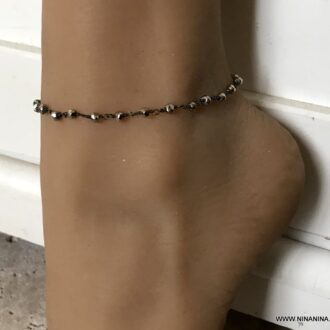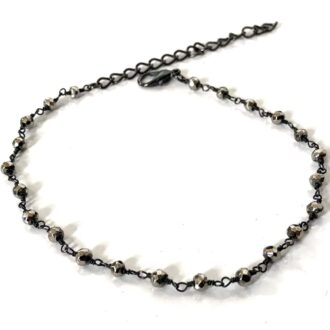 Bracelet cheville pierre pyrites facettées métal noir