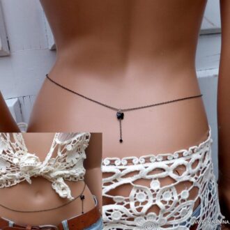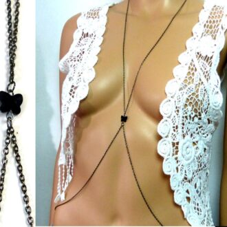 Chaine de taille pendentif swarovski noir papillon
