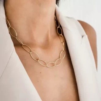 Plutôt que de choisir entre une chaîne longue et une autre plus courte, portez les deux ! Voire encore davantage. L’accumulation de colliers fins est une tendance qui ne se démode pas. L’objectif est d’habiller le cou et de sublimer le décolleté, tout en finesse. Pour cela, on sélectionne des bijoux fins, plus ou moins assortis, avec des longueurs différentes. Pour ne pas trop surcharger, quatre ou cinq colliers à la fois sont suffisants : un ras-de-cou, une chaîne plus longue, un pendentif et un sautoir. L’accumulation de bijoux convient à toutes les femmes et se porte principalement sur un décolleté dégagé ou alors, sur un top à col haut, mais très sobre. Avec un haut à col rond, on peut mixer en premier un ras du cou rond avant d’accumuler les autres chaînes. Avec un décolleté en V ou une chemise ouverte, les chaînes femmes de différents styles et longueurs sont parfaites.