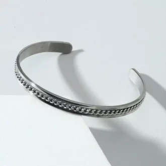 A l’origine symbole de pouvoir, de puissance, le jonc en acier inoxydable, est généralement massif et imposant. Il est souvent particulièrement apprécié des hommes de caractères, qui peuvent assumer et revendiquer le côté tapageur de ce bijou viril. Il trouvera tout naturellement sa place au poignet des hommes robustes et forts, tout à l’image du jonc!