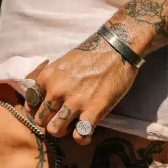 À l’origine, le bracelet manchette était composé d’une large bande de métal rigide, incrustée de pierres précieuses, qui ne se refermait pas au poignet. Au fil des siècles, la manchette s’est diversifiée par des matières et formes différentes, devenant ainsi un bijou visuel à la fois imposant et élégant qui a su conquérir le monde de la mode pour homme!