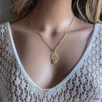 Elle est essentiellement composée des 5 doigts mais peut aussi contenir un oeil au milieu qui protège du mauvais oeil. Cette main protège toute personne qui la porte du diable, de la jalousie de l’entourage, des mauvais esprits et de la malchance.