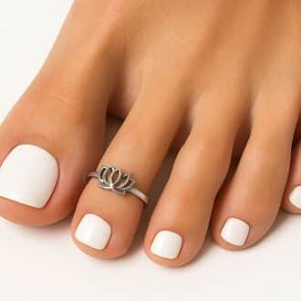 Bague pour pied ou phalange motif lotus acier inoxydable argenté