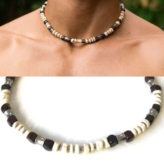 Les colliers de perles pour homme se déclinent dans des styles qui allient tradition et modernité. Découvrez des modèles minimalistes en perles noires, appréciées pour leur sobriété et leur mystère, mais aussi des mélanges audacieux avec des chaînes en argent sterling ou des matériaux comme le cuir. Certains designs intègrent des perles baroques, irrégulières et texturées, pour un look brut et authentique.