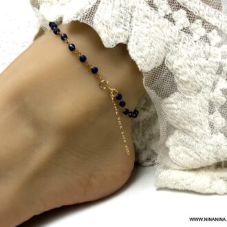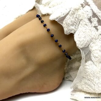 Bijou duo chaine de cheville dorée et pierre Lapis lazuli