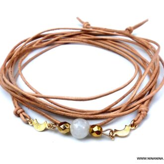 Bracelet pierre de lune et cuir – Touche bohème ou rock
