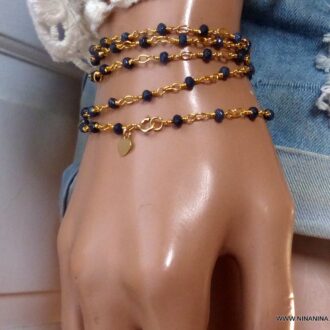 Bracelet Swarovski noir perles et plaqué or 14 carats