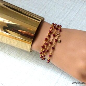 Bracelet Rubis Et Plaqué Or 4 tours motif coeur