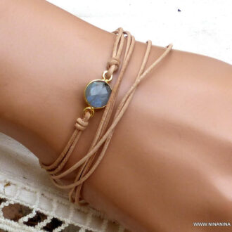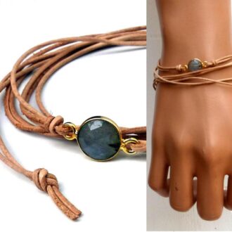 Bracelet pierre Labradorite femme Plaqué Or cordon cuir
