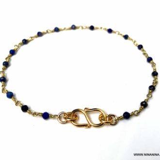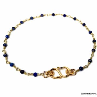 Bracelet lapis lazuli véritable femme plaqué or motif infini