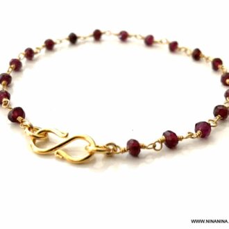 Bracelet grenat rouge femme fermoir symbole infini Plaqué Or