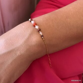 Bracelet Quartz Rose et Grenat Rouge fin Plaqué Or