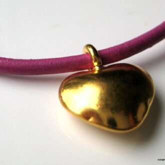 Bracelet cuir coeur Argent 925 massif Plaqué Or