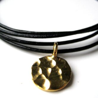 Bracelet cuir medaille Argent 925 massif Plaqué Or