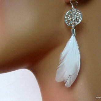 Pour un look hippie ou bohème vous pourrez notamment associez votre bijou de plumes, avec une jolie tunique blanche en dentelle et une jolie coiffure, arrangée d’accessoires cheveux comme un headband.