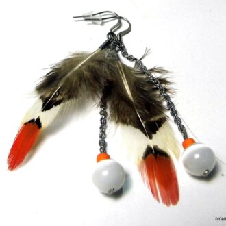 Il existe de multiple raison de porter des bijoux artisanaux en plumes à commencer par la mode, en effet cette saison les bijoux faits de plumes restent des bijoux très tendance et en vogue. Mais ces bijoux plumes possèdent aussi de nombreuses qualités de par leur nature, a commencer par leur légèreté. En effet les plumes naturelles d’oiseaux sont très légères ce qui permet à Ninanina, votre bijoutier créateur en ligne, de créer des paires de boucles d’oreilles pendantes en plumes multicolore, ou un imposant collier plastron fantaisie qui soit « léger comme une plume ».