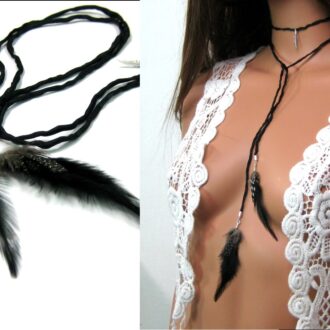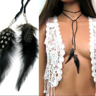 Pour un look hippie ou bohème vous pourrez notamment associez votre bijou de plumes, avec une jolie tunique blanche en dentelle et une jolie coiffure, arrangée d’accessoires cheveux comme un headband.
