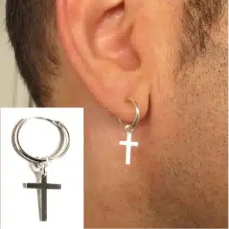 Ajoutez une touche rock à votre style avec cette Boucle d’oreille creole avec croix Acier inoxydable homme pour oreille perçée.