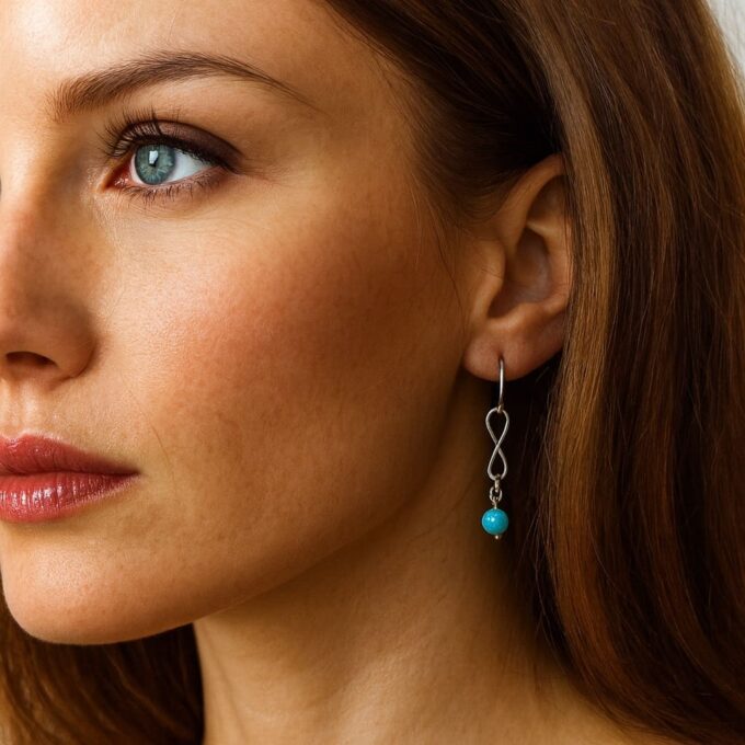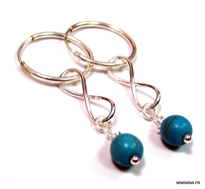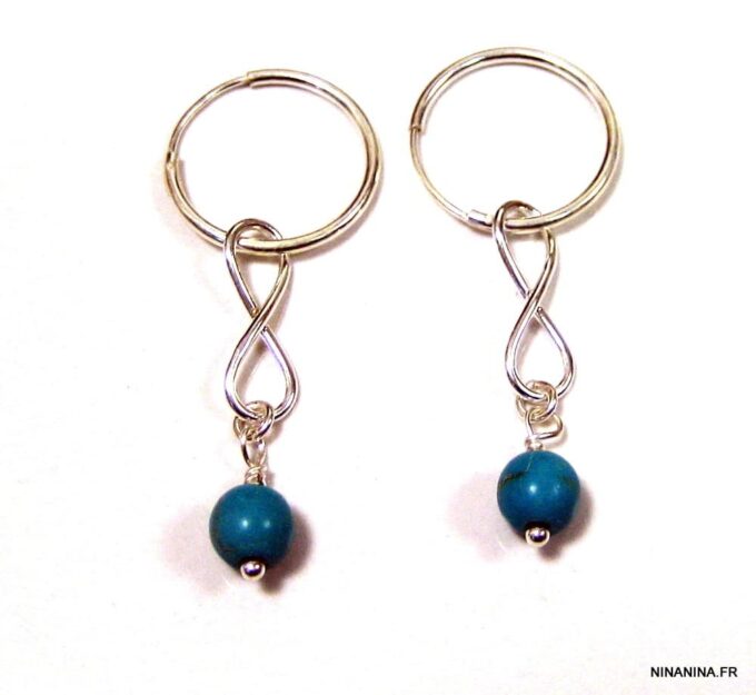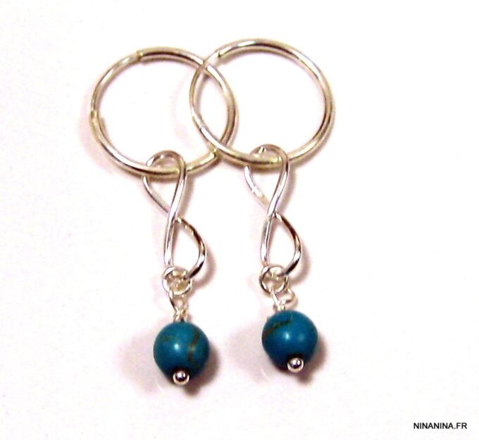 Boucles d’oreilles créoles infini en argent et perle turquoise – Bijou artisanal fait main