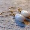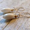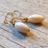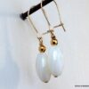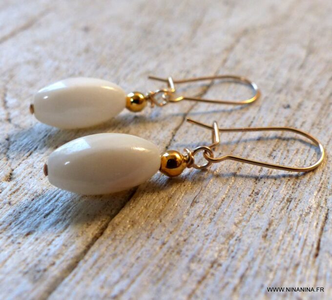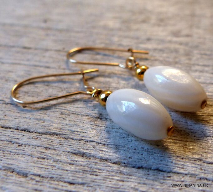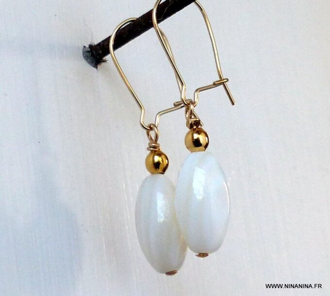 Boucles d’Oreilles Dormeuses Pendentif Ovale En Nacre Blanche Plaqué Or Gold Filled Artisanales