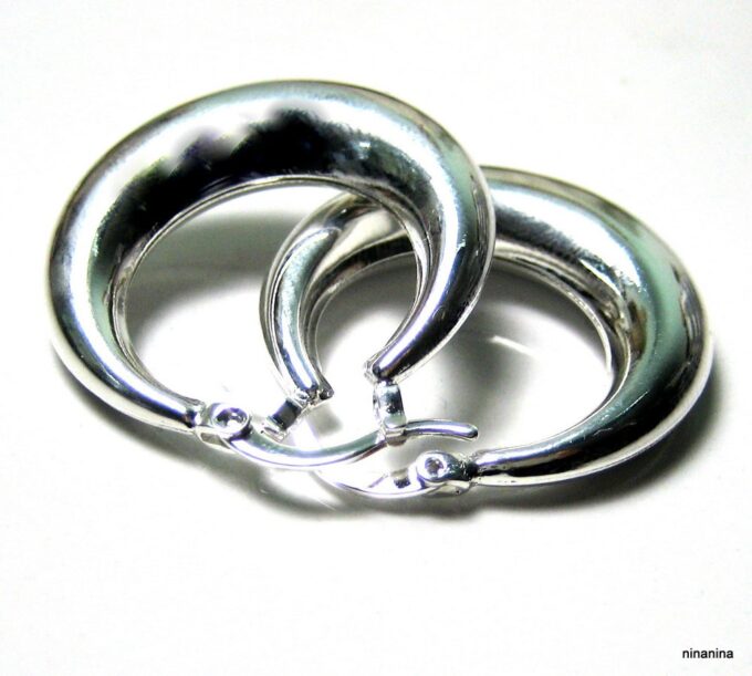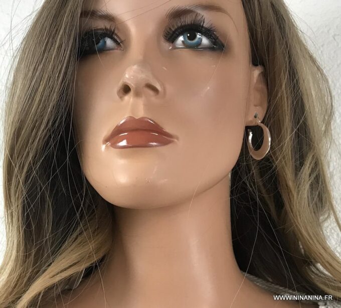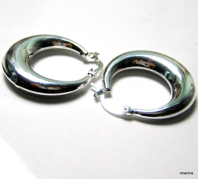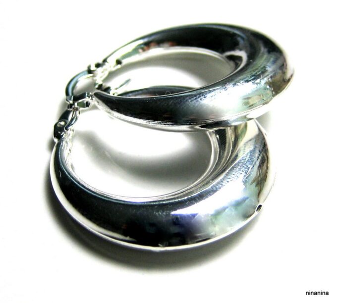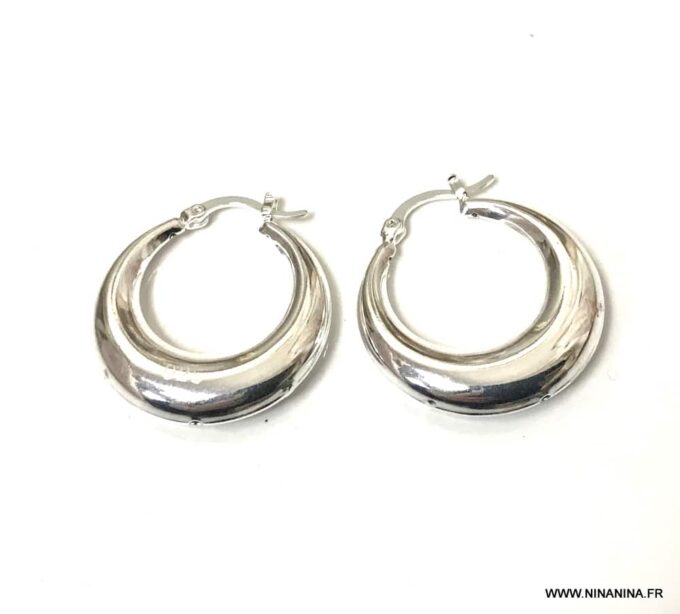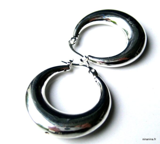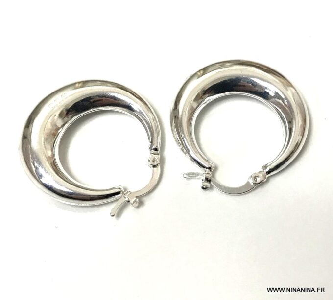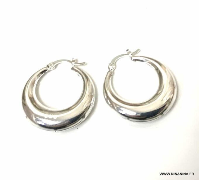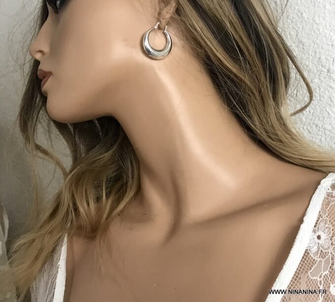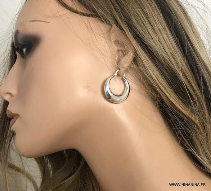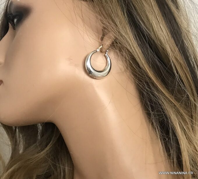 Créoles épaisses Argent plaqué pour femme rondes aux rebords bombés.