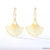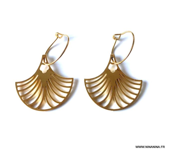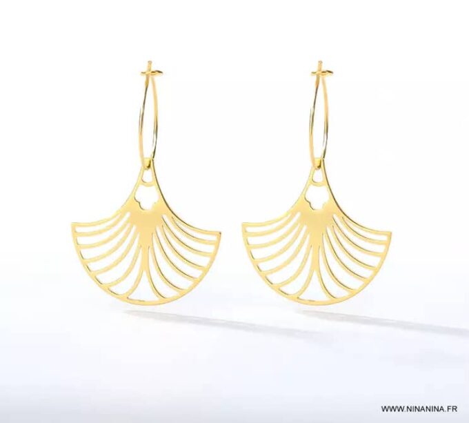 Ces Boucles d oreilles fines créoles Acier inoxydable doré avec leurs pendentifs en forme d’éventail aux motifs délicatement découpés vous assurerons un look à faire tourner les têtes! De petites boucles d’oreilles créoles dorées qui ne manqueront pas d’ajouter une touche bohème délicate et raffinée à toutes vos tenues vestimentaires au quotidien dans un accord parfait!