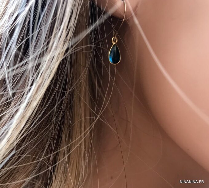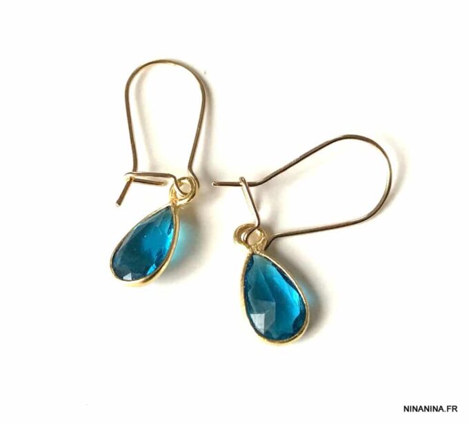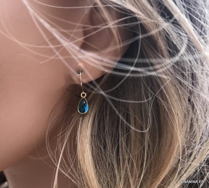 Des Boucles d oreilles Topaze bleue et plaqué or de fabrication française