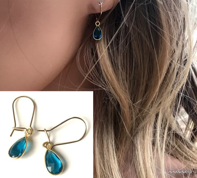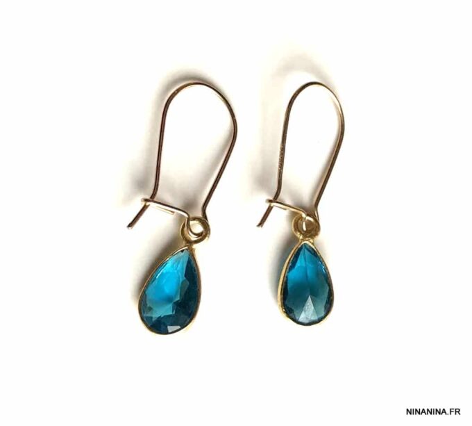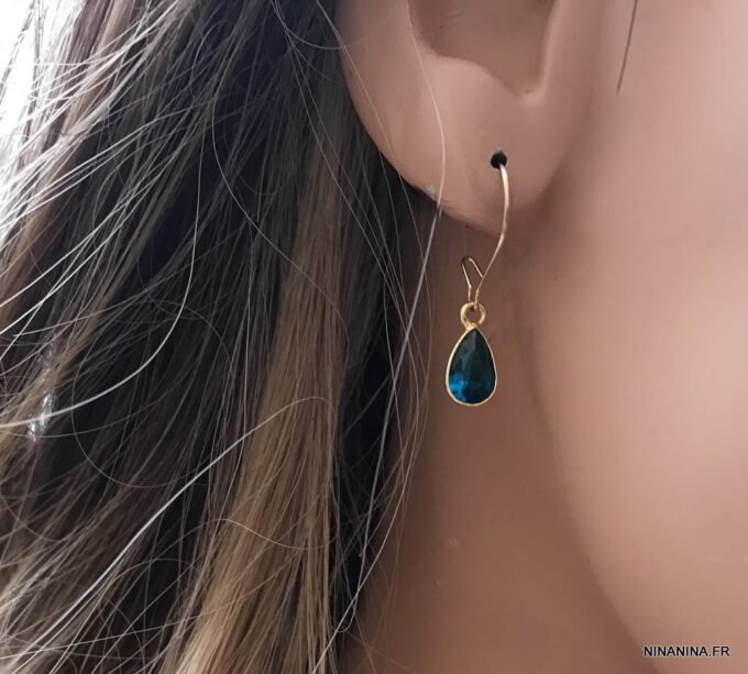 Ne cherchez plus, ces Boucles d oreilles Topaze bleue et plaqué or fines et délicates et composées de pendentif topaze bleue hydro à facettes forme de goutte montés sur boucles ovales en plaqué or goldfilled, sont faites pour vous ! Ces Boucles d oreilles pierre de naissance décembre Topaze bleue offriront une petite touche de brillance et de magie à votre visage. Si vous aimez les bijoux en pierres fines, ces Boucles d’oreilles topaze bleue sont le bijou pour femme qui vous ira à ravir.