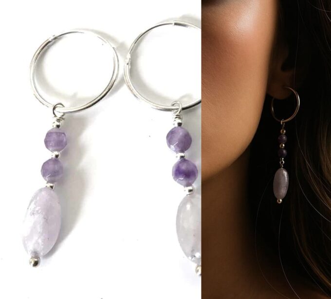 Si vous êtes fan de bijoux en pierres fines, la douce association de l’argent et de cette splendide pierre fine mauve font de ces boucles d’oreilles créoles un bijou que vous ne voudrez plus quitter!