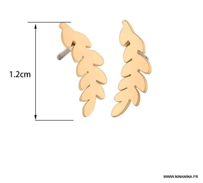 Boucles d’oreilles clous exotiques et élégantes aux allures bohème, ces petites feuilles en acier inoxydable doré aux contours délicats pimenteront votre look!