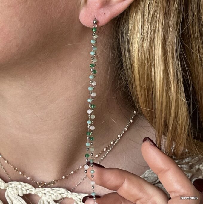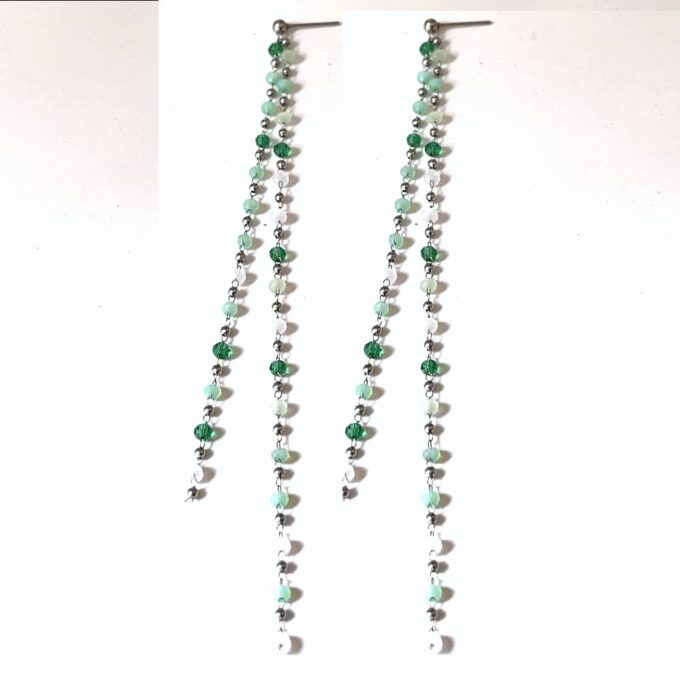 Sublimez votre allure avec ces Boucles d’oreilles chaines pendantes perlées vertes acier inoxydable.
