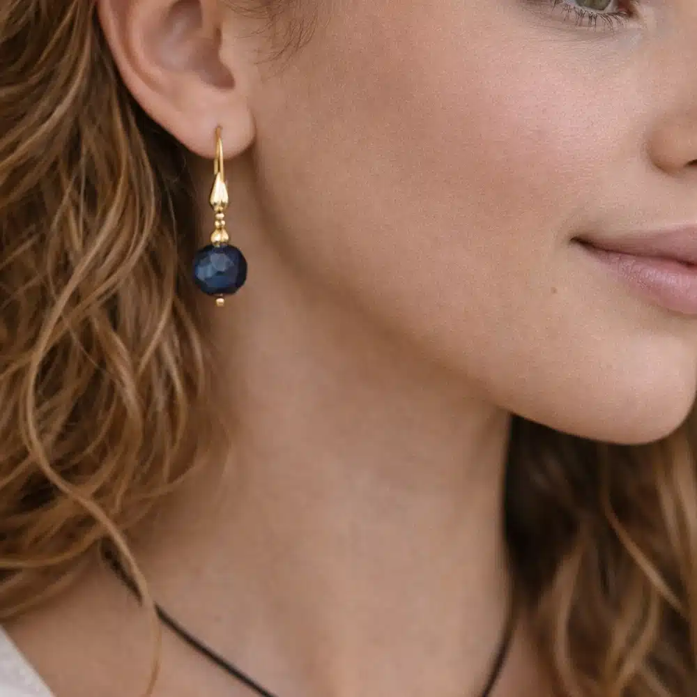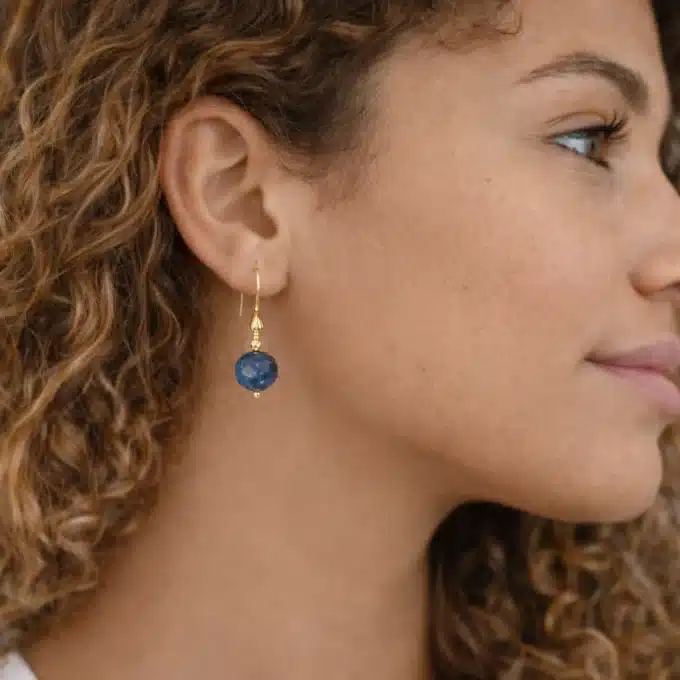 Montées sur une base en laiton doré, elles offrent une finition chaleureuse qui sublime la couleur intense de la pierre. Légères et agréables à porter, ces Boucles d’oreilles féminines sont idéales pour un usage quotidien tout en restant suffisamment élégantes pour accompagner une tenue plus habillée.