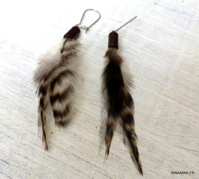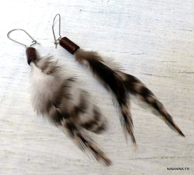 Apportez une touche de fantaisie à votre tenue avec ces Boucles d’oreilles longues plumes, perles Bois Et Acier constituées de longues plumes blanches et marron et de perles tubes en bois montés sur boucles dormeuses ovales en Acier inoxydable argenté. Cette paire de Boucles d Oreille de haute qualité est unique et fabriquée à la main, de façon artisanale dans notre atelier en France.