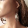 Les Boucles d’Oreilles sont fabriquées à la commande et mesure 20 cm de long environ. La dimension des plumes est de 15 x 1,5 cm environ et peut varier légèrement d’un modèle à l’autre.