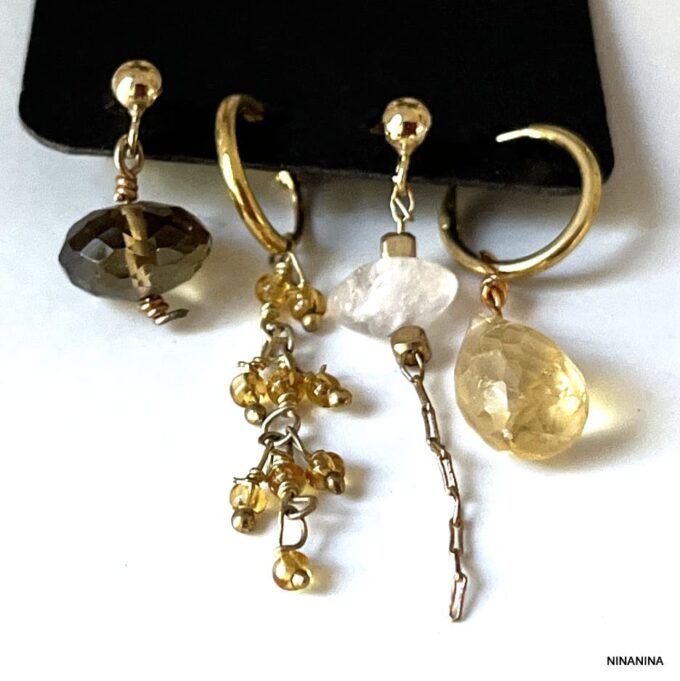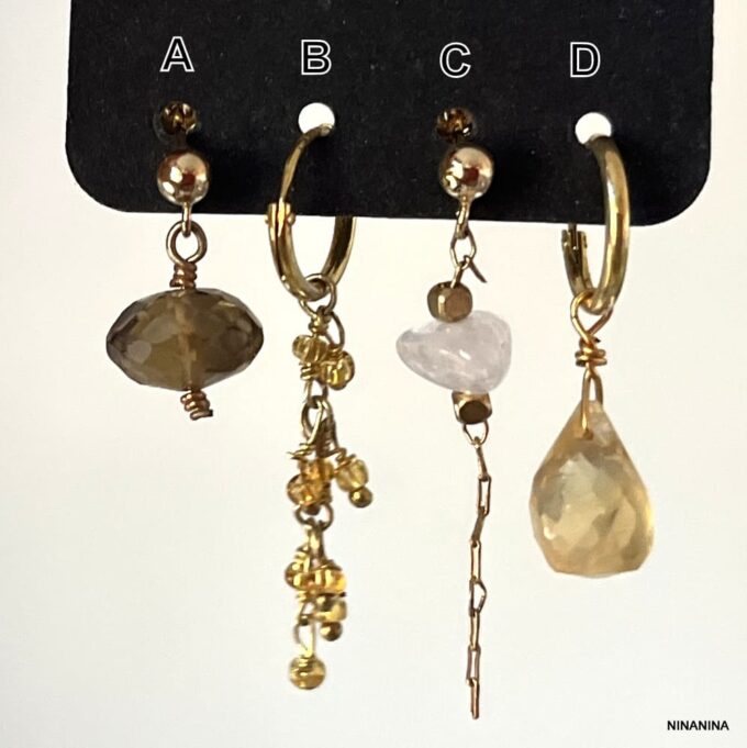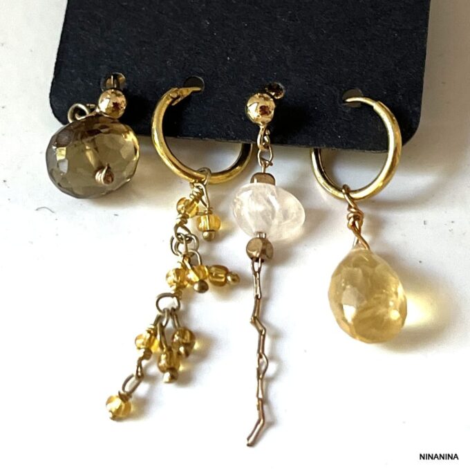 Boucles d’Oreilles Pierre Jaune Citrine et Quartz – 4 Trous – Élégance et Éclat