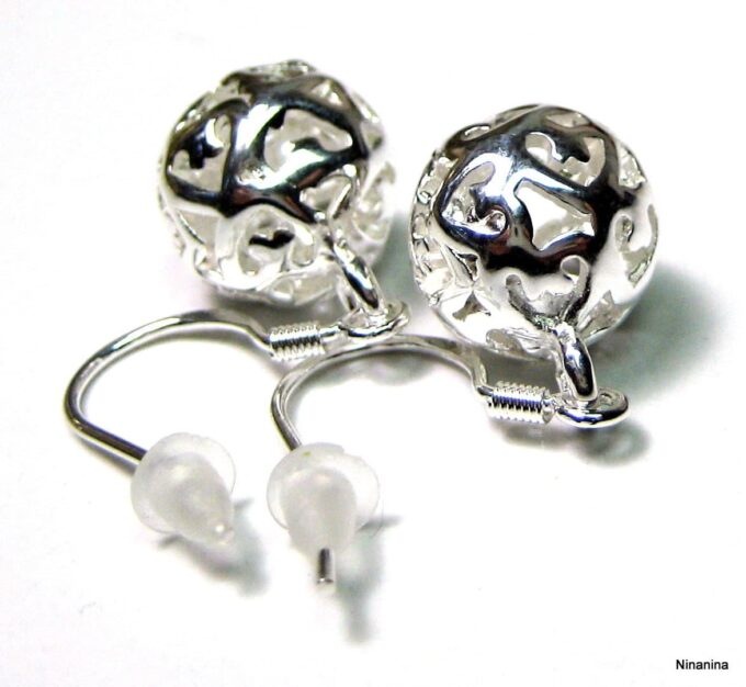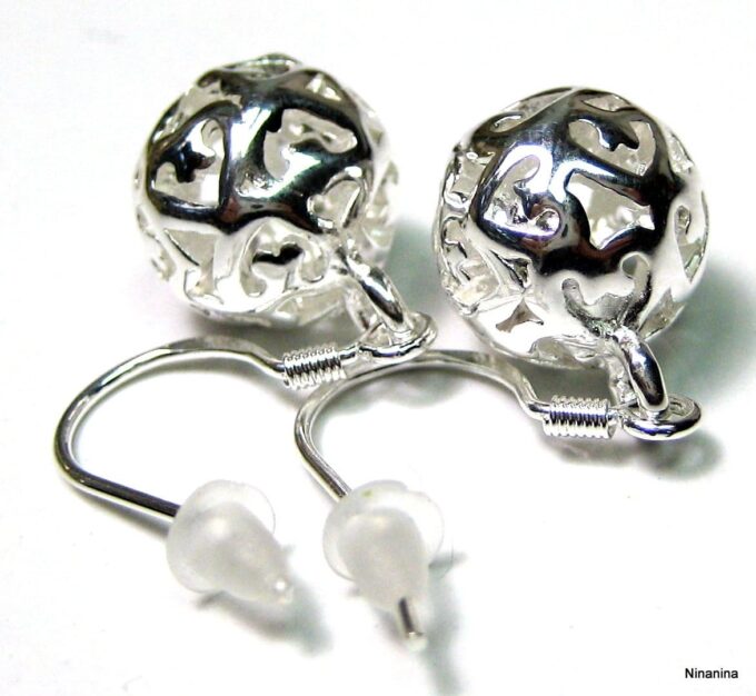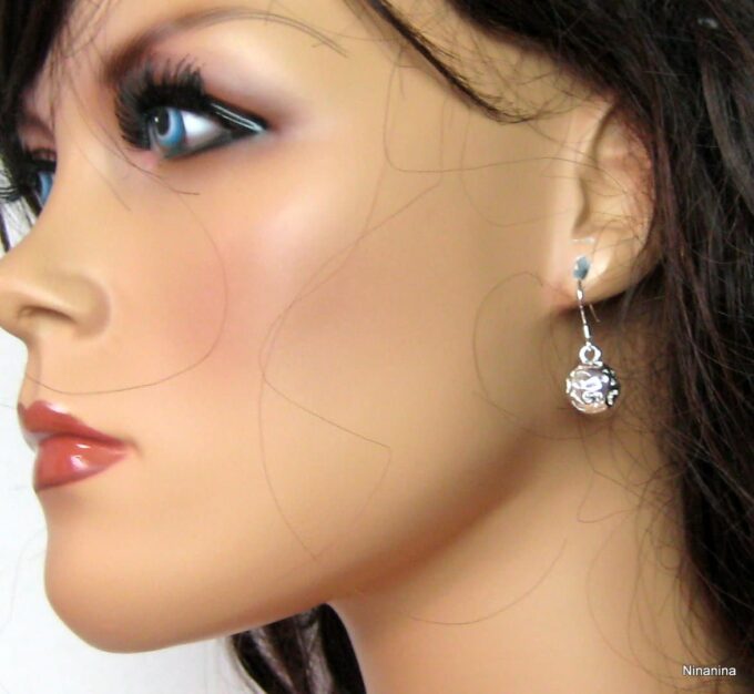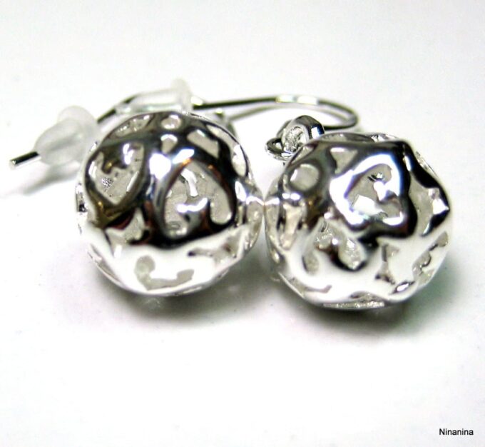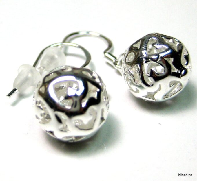 Boucles D’oreilles boules pendantes plaqué argent