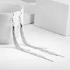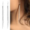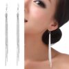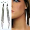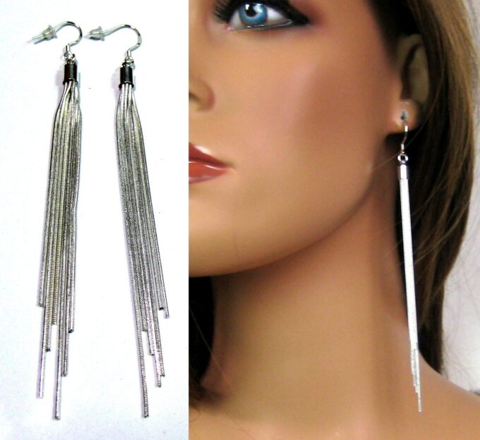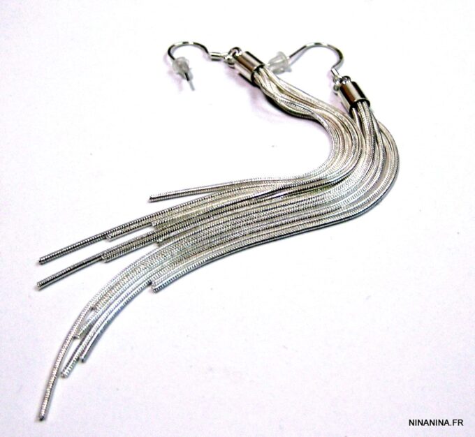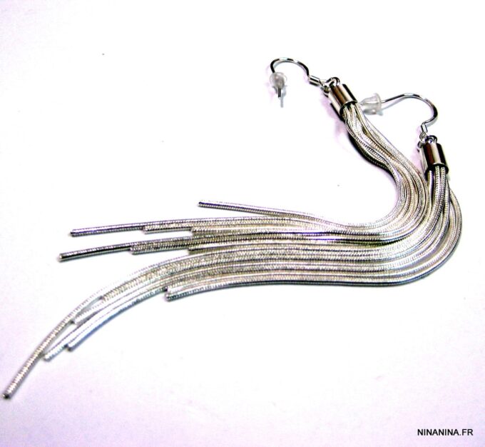 Craquez pour ces Boucles d’oreilles tres longues argent chainettes composées de chainettes serpent en plaqué argent de différentes longueurs montées sur boucles pendantes en plaqué argent.