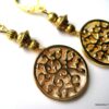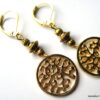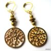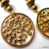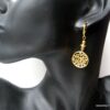 Boucles d’oreilles métal doré filigrané composées d’un pendentif rond filigrané et de 3 petites perles en métal doré montées sur boucles dormeuses en métal doré. Diamètre du pendentif : 1,7 cm. Longueur (boucle comprise) : 5 cm environ. Livrées dans sa pochette d’organza. Bijou 100% fait-main.