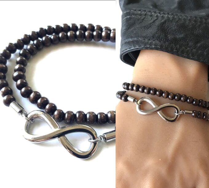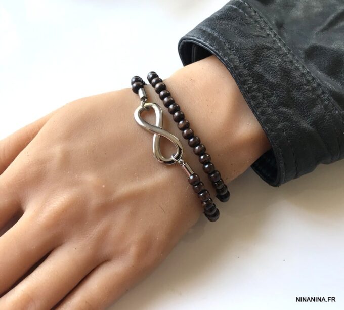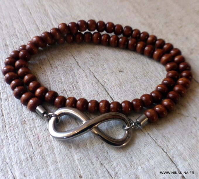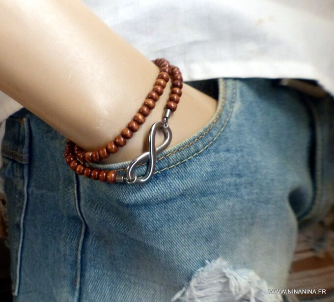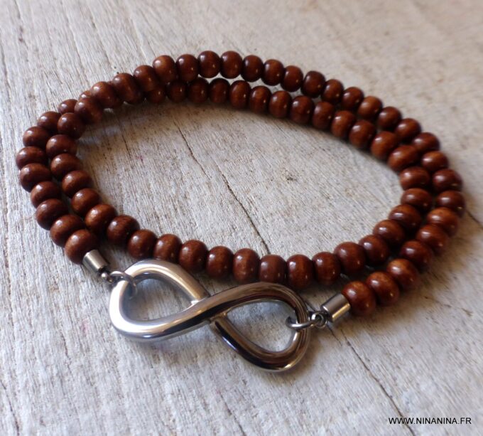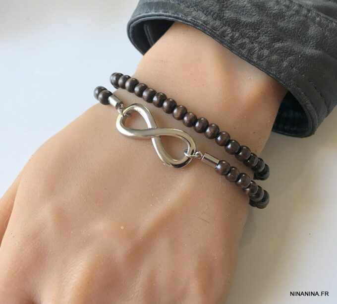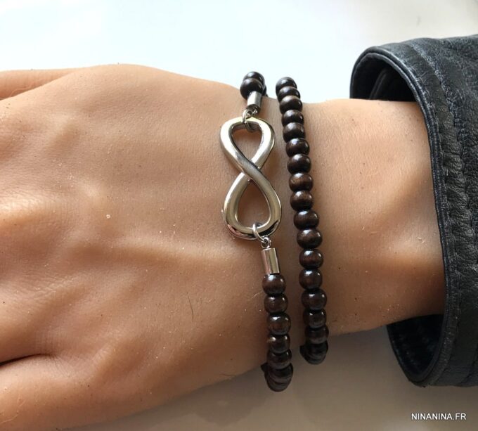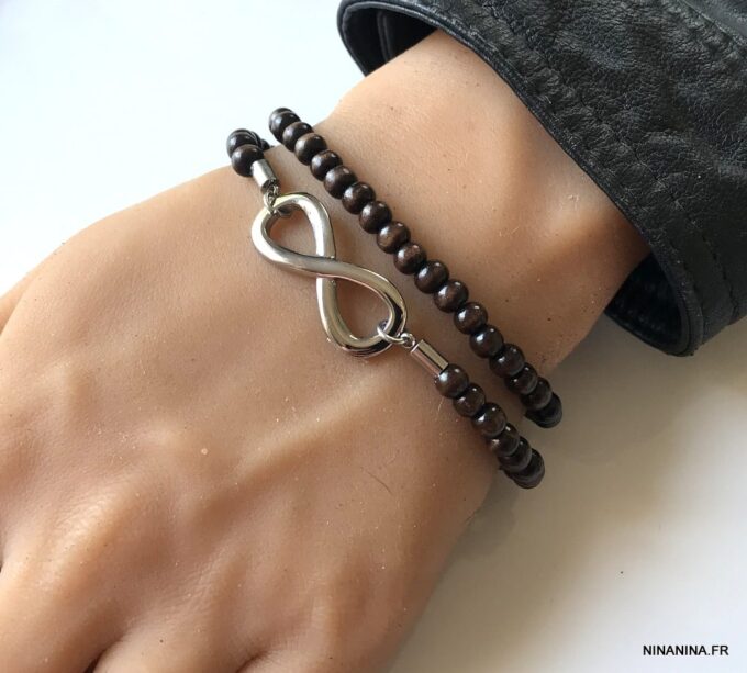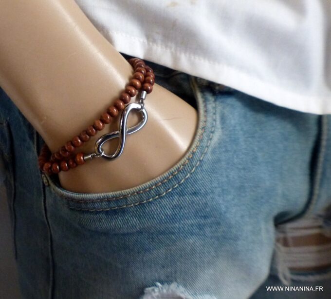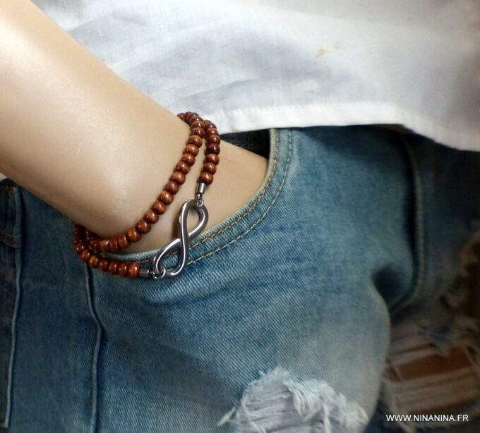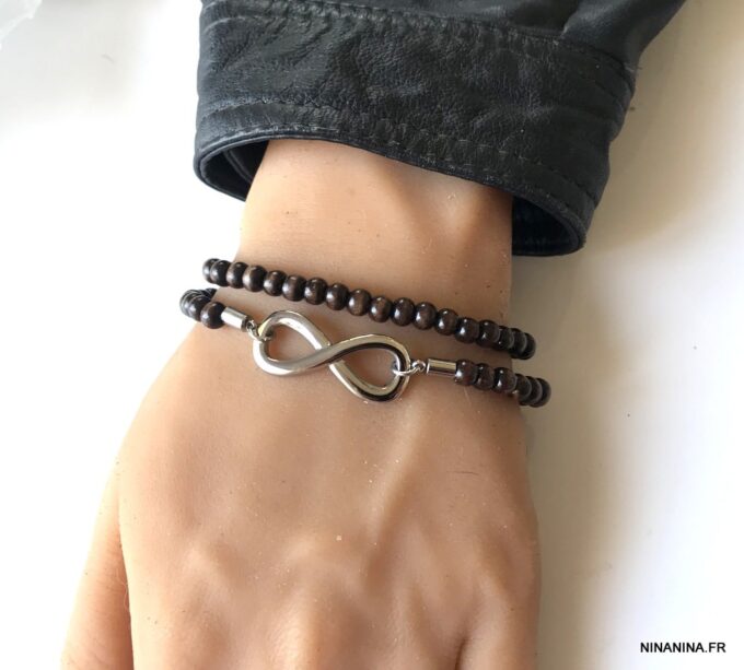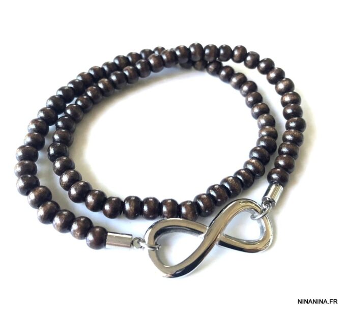 Vous souhaitez modifier ou ajouter une pièce de ce bracelet homme infini? modifier la couleur ou la matière ? Ce bracelet homme infini est fait sur mesure et comme la majorité des bijoux Ninanina, est personnalisable. En plus de choisir la couleur des perles en bois, vous pouvez demander à modifier d’autres caractéristiques de ce bijou. La longueur proposée est de 42 cm pour les hommes et 39 cm pour les femmes mais il est possible d’opter pour une toute autre longueur si vous avez des poignets plus fins ou plus forts que la norme. De la même façon, vous pouvez choisir un bracelet à un trois tours au lieu de deux; Il vous suffit de laisser un commentaire et nous élaborerons ensemble votre nouveau bijou personnalisé.