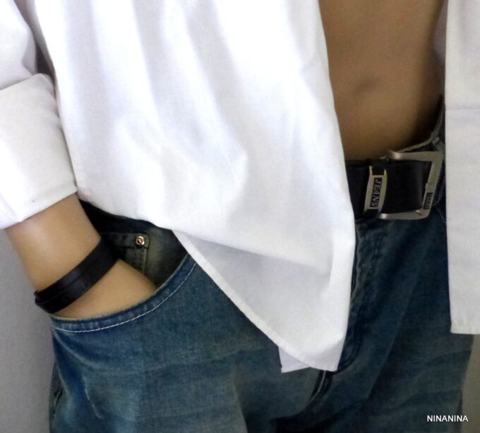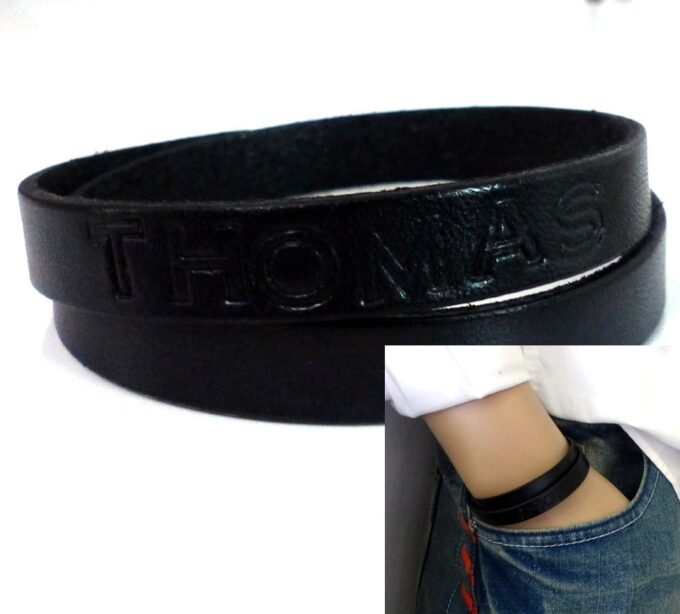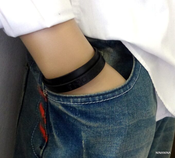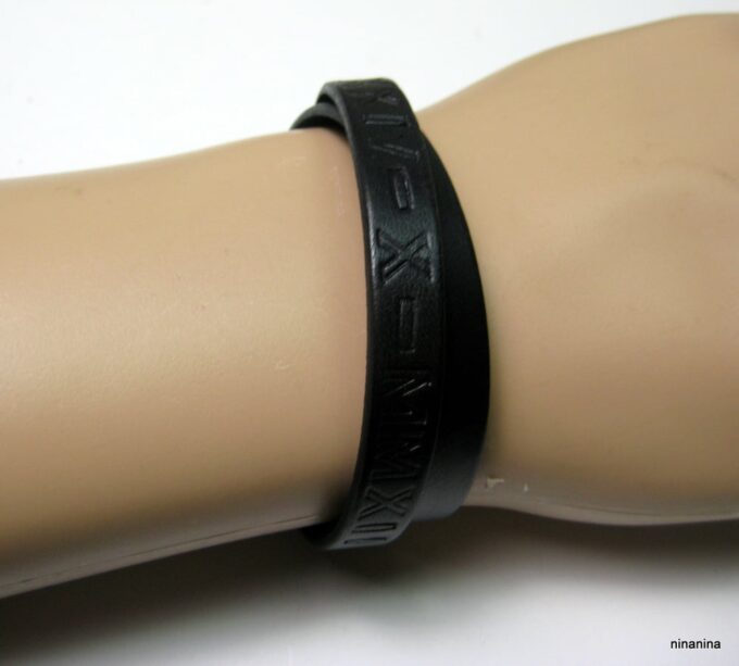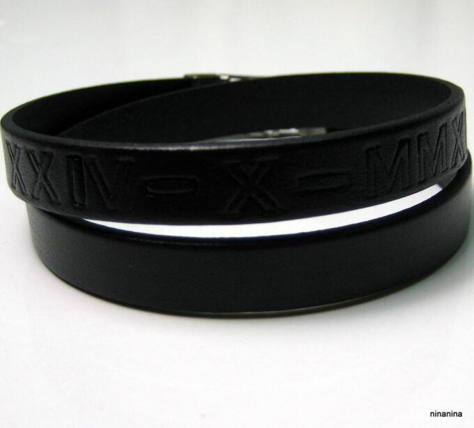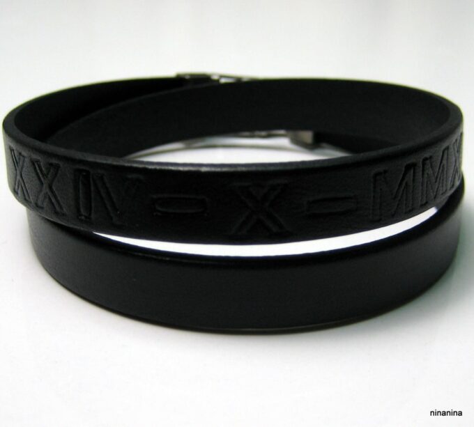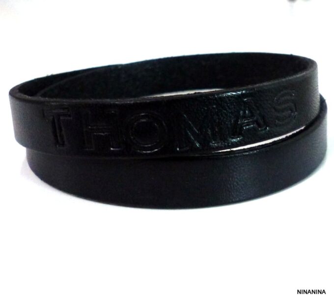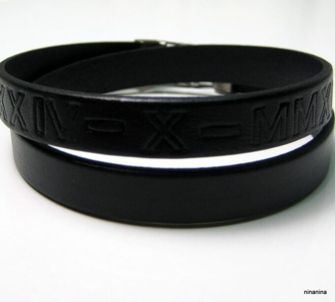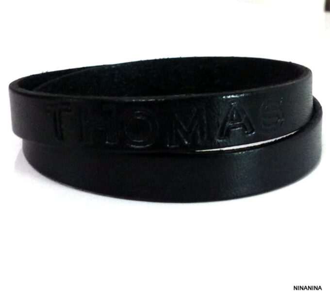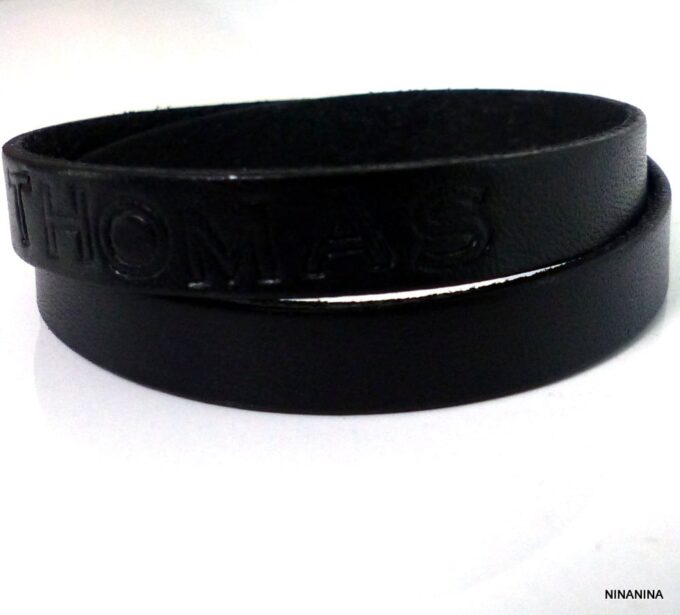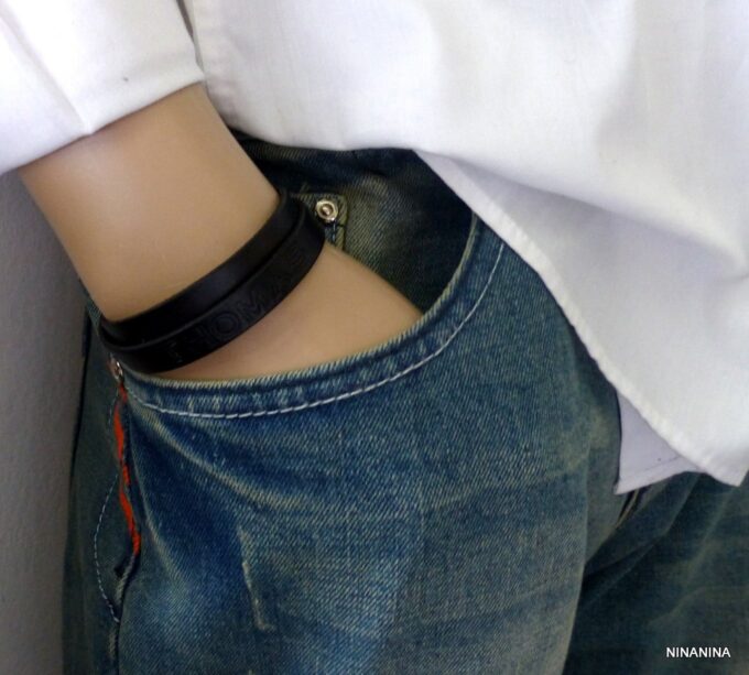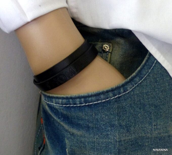 Bracelet homme cuir et argent massif personnalisé composé d’un bandeau de cuir marron chocolat (1 cm de large).