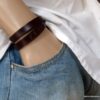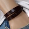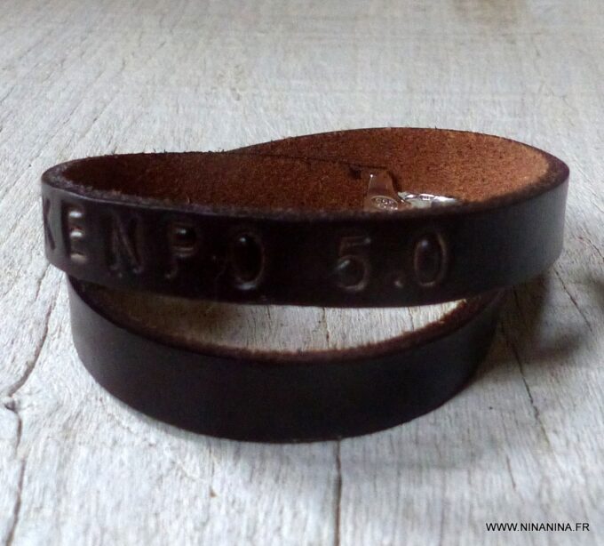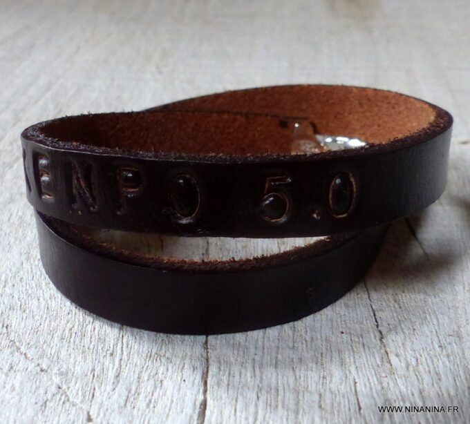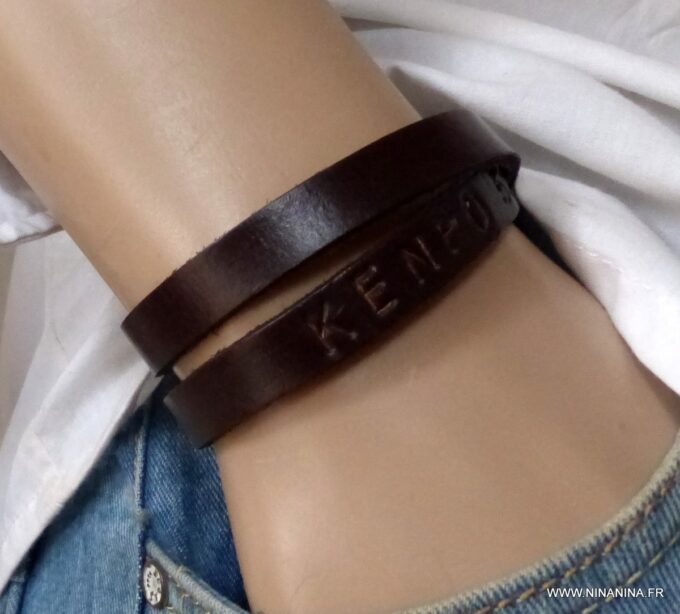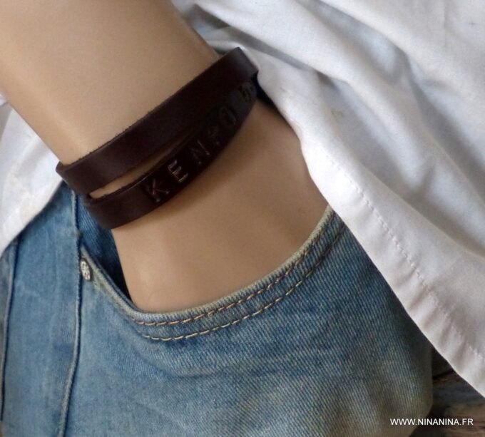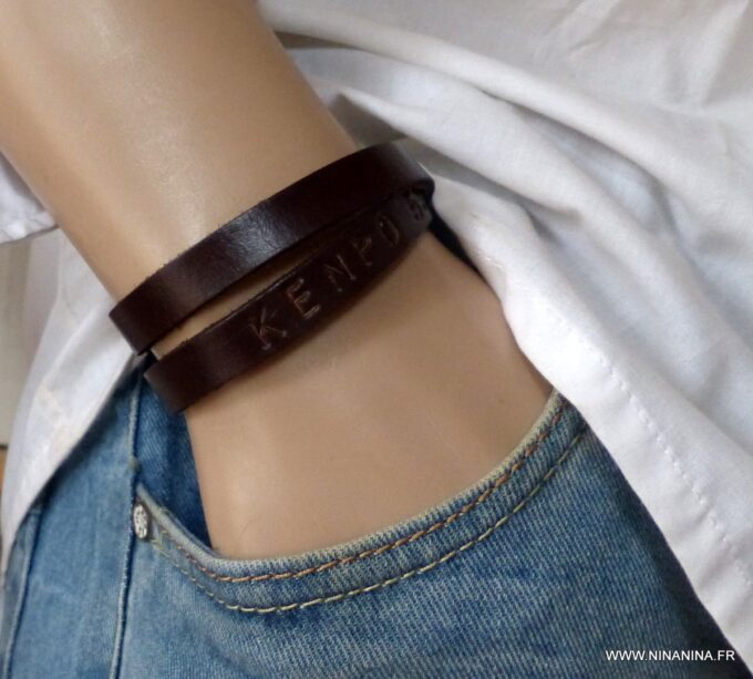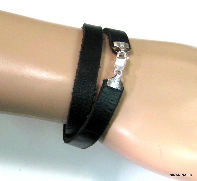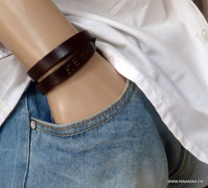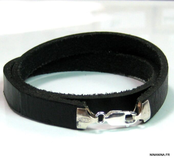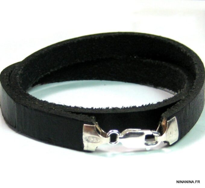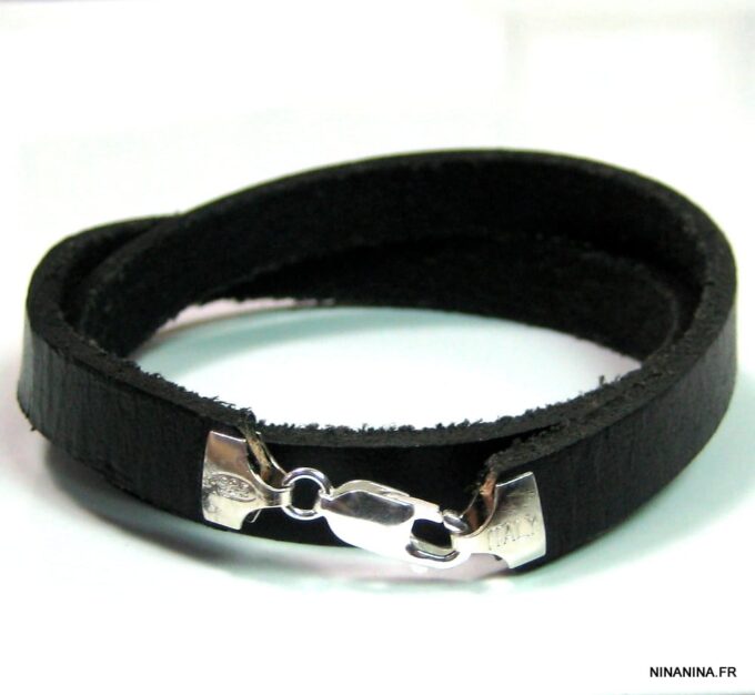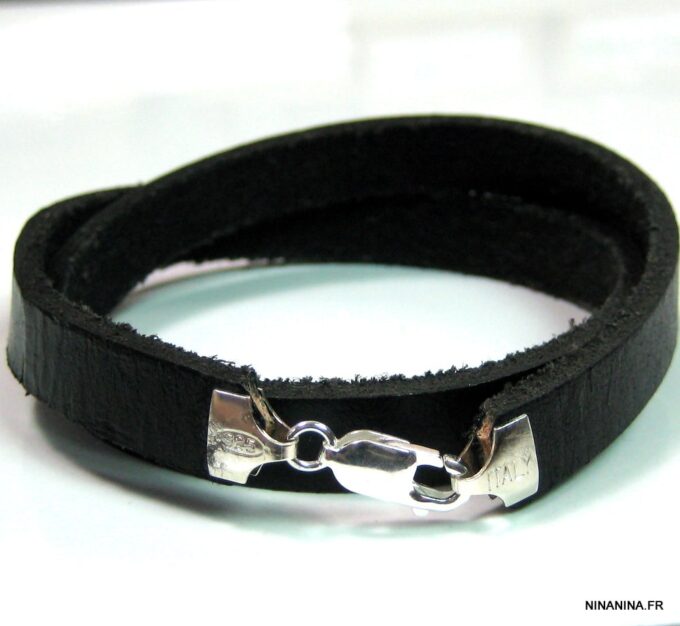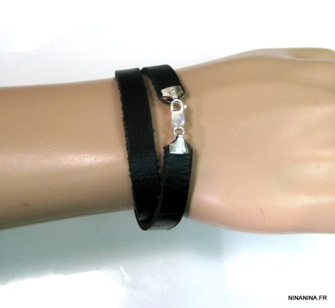 Ne cherchez plus ! Ce Bracelet homme personnalisé cuir Argent 925 massif est fait pour vous ! Il est composé d’une lanière de cuir noir (10 mm de large) à enrouler autour du poignet (2 tours) et terminé par un fermoir mousqueton en argent 925, sûr et facile d’utilisation. Ce Bracelet homme personnalisé enlacera votre poignet avec ses trois tours et l’habillera joliment du prénom de votre enfant ou de votre chéri. Personnalisable et destiné à un homme comme à une femme, ce joli Bracelet personnalisable fera un cadeau parfait pour la fête des pères ou la fête des mères; La personnalisation et la gravure apportent une touche personnelle et fait de ce bracelet un cadeau personnalisé unique au monde !
